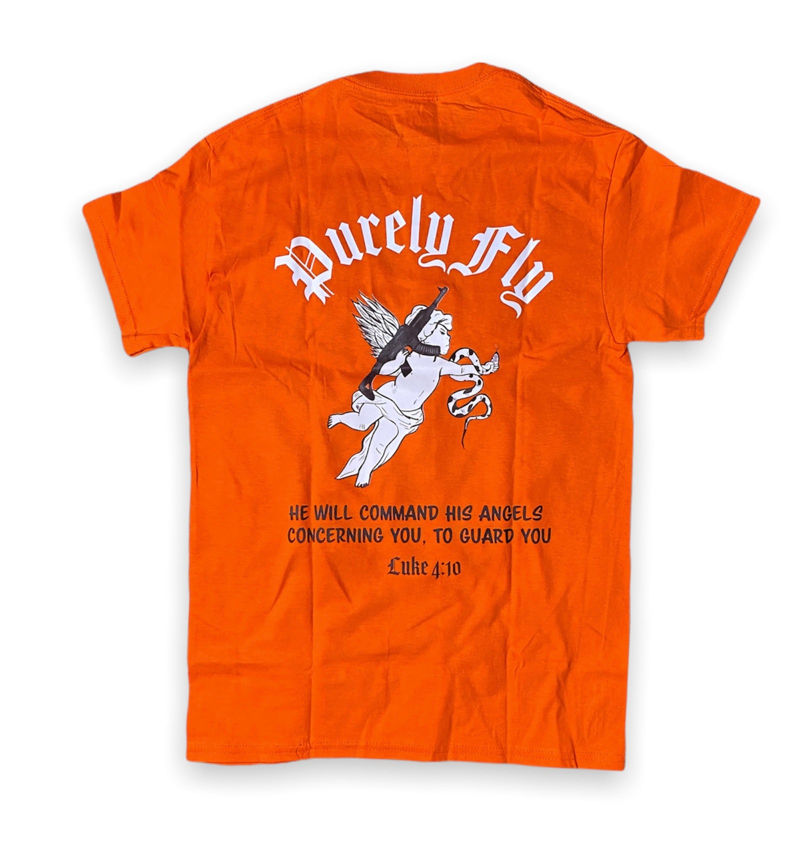 Angel holding gun & snake (serpent) with scripture 4:10 quoted on the back